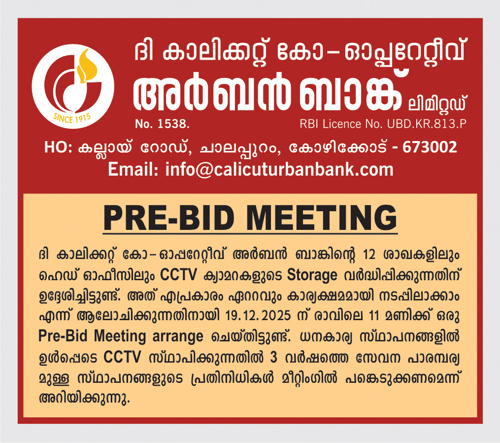 ബാങ്കിലേക്ക് ആവശ്യമായ 2026 ലെ ഡയറി, കലണ്ടർ എന്നിവ പ്രിന്റ് ചെയ്യുന്നതിന് ക്വട്ടേഷൻ ക്ഷണിക്കുന്നു